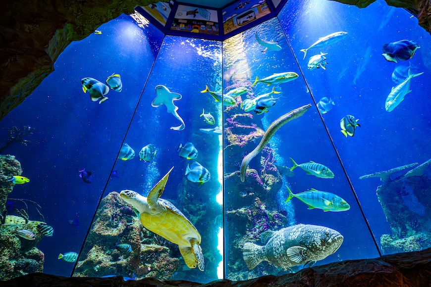 Im Haus des Meeres in Wien betrachten Kinder und Eltern eine Vielzahl an Tieren aus allen Teilen der Welt in ihren unterschiedlichen Lebensräumen.